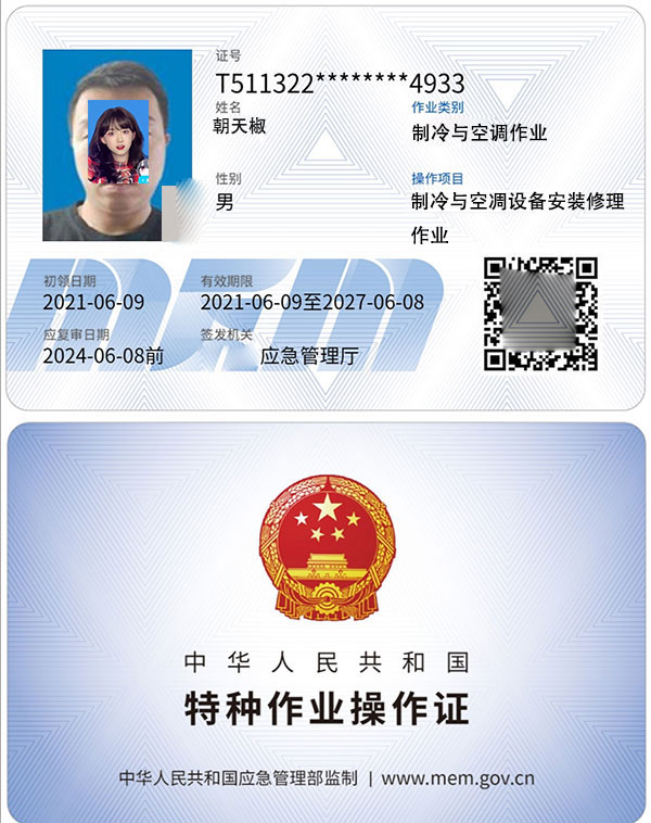 《特種作業證書樣板展示》