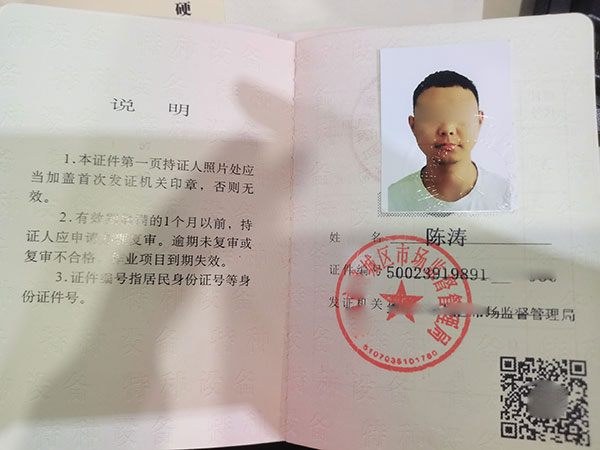 《特種設(shè)備作業(yè)證》工種:特種安全設(shè)備管理A,起重機(jī)指揮Q1,起重司機(jī)(限門座式起重機(jī))Q2,起重司機(jī)(限橋式起重機(jī))Q2,起重司機(jī)(限門式起重機(jī))Q2,起重司機(jī)(限纜索式起重機(jī))Q2,起重司機(jī)(限塔式起重機(jī))Q2,起重司機(jī)(限流動(dòng)式起重機(jī))Q2,起重司機(jī)(限升降機(jī))Q2,叉車司機(jī)N1,觀光和觀光列出司機(jī)N2,電梯維修T,鍋爐壓力容器壓力管道管理A,電梯管理A,起重機(jī)械管理A,場(廠)內(nèi)專用機(jī)動(dòng)車輛管理A,工業(yè)鍋爐司爐G1,電站鍋爐司爐G2,鍋爐水處理G3,快開門式壓力容器操作R1,移動(dòng)式壓力容器充裝R2,氣瓶充裝P,金屬焊接操作(壓力焊PE焊),非金屬焊接操作(壓力容器焊),食品檢驗(yàn)員,化學(xué)檢驗(yàn)員,農(nóng)產(chǎn)品檢驗(yàn)員! 特種設(shè)備作業(yè)證是由質(zhì)監(jiān)局"頒發(fā)"的證特種設(shè)備作業(yè)證,是每4年一審。