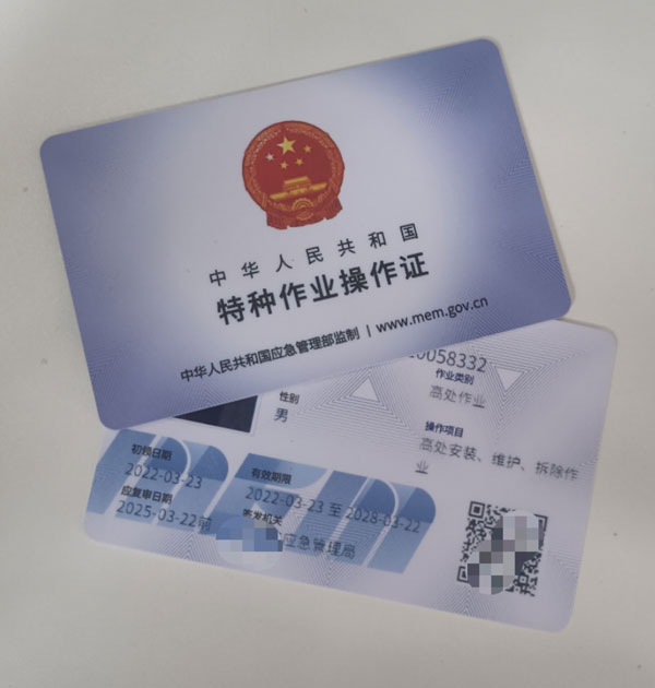 電工證,焊工證,高處安裝,登高架設作業,制冷與空凋設備運行操作作業,制冷與空凋設備安裝修理作業,電力電纜,繼電保護,電氣試驗,防爆電氣作業,特種作業人員必須經專門的安全技術培訓并考核合格,取得《中華人民共和國特種作業操作證》(以下簡稱特種作業操作證)后,方可上崗作業。