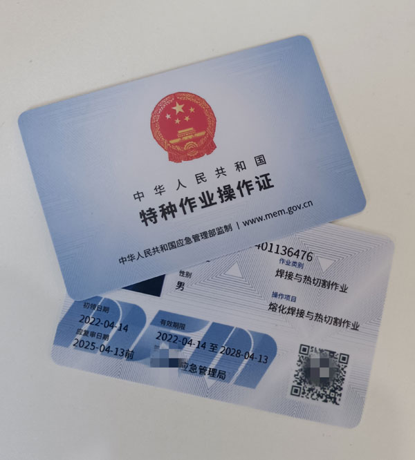 質監局特種設備人員作業證: