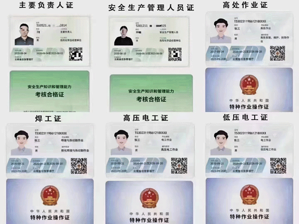 所有安全生產經營單位含(非煤礦山企業、冶金有色生產企業、危險化學品企業、非高危生產經營單位、交通運輸企業、金屬非金屬礦山企業、煤礦企業、石油天然氣作業、職業康負責人和安全生產管理人員)負責人和安全管理人員,經培訓合格后,頒發四川省應急廳統一監制的安全資格證書