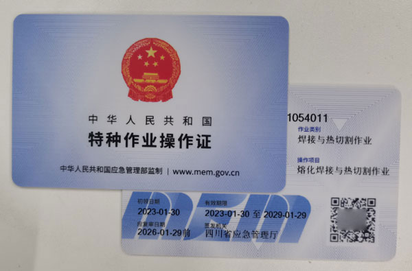 應急管理局,的小卡片也就是我們說的上崗證,無論是你要考低壓還是高壓都一定要安監(jiān)局出的證!